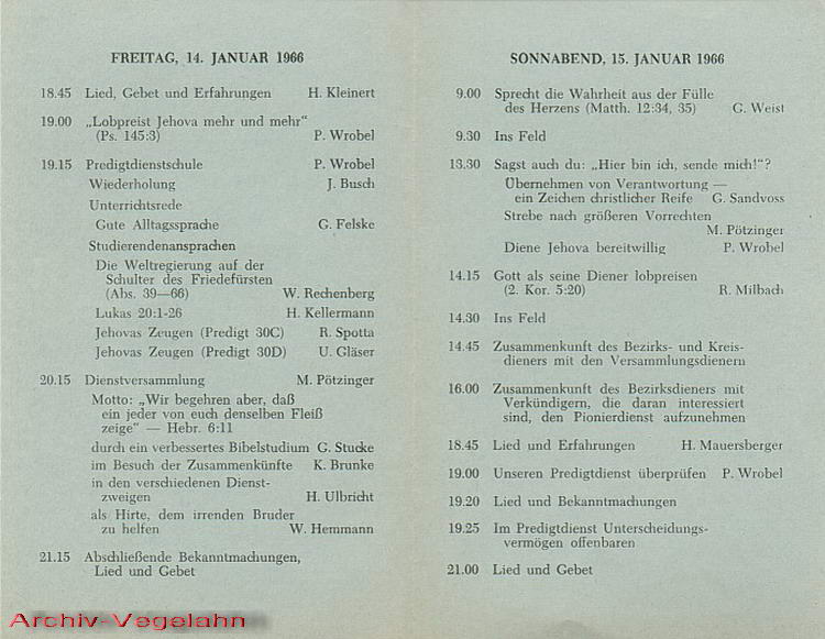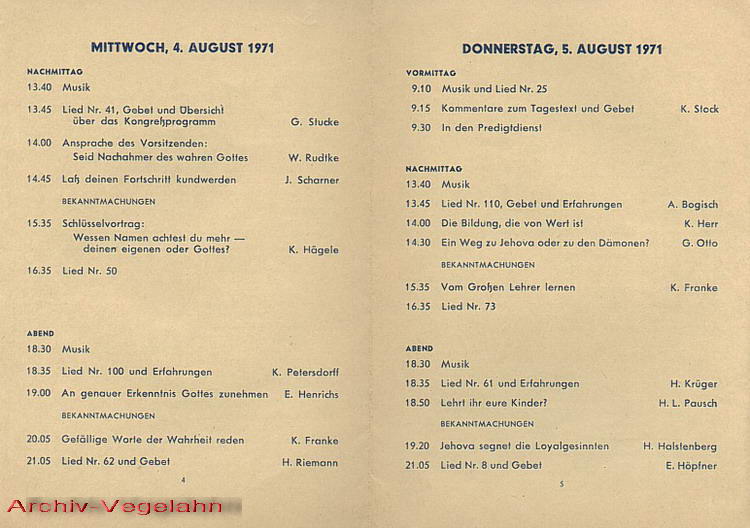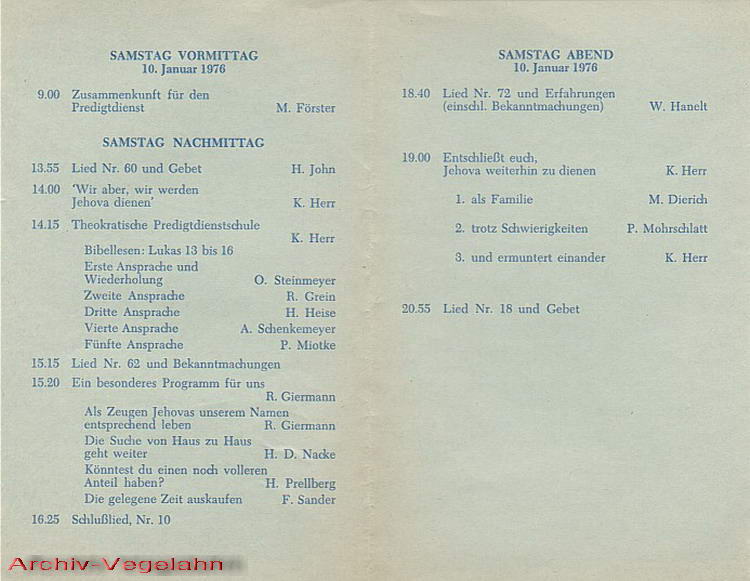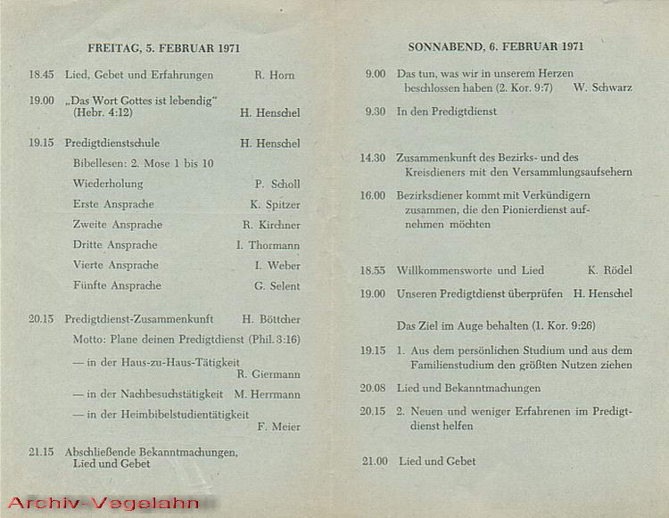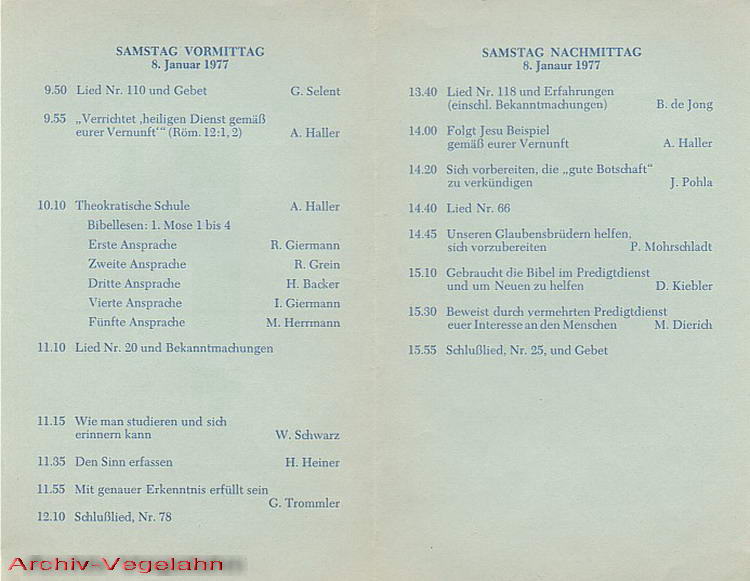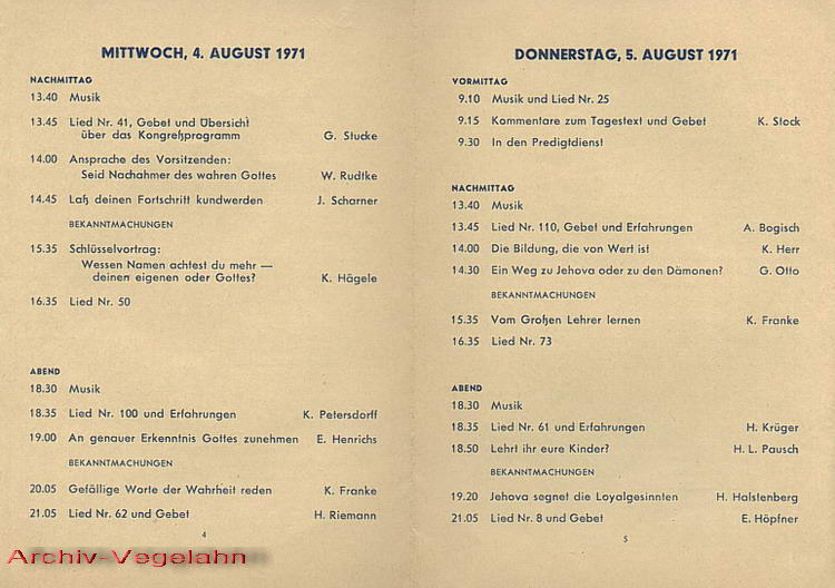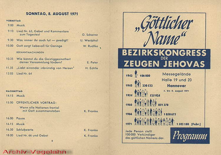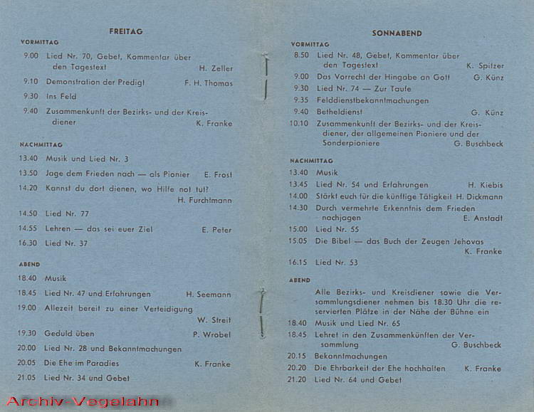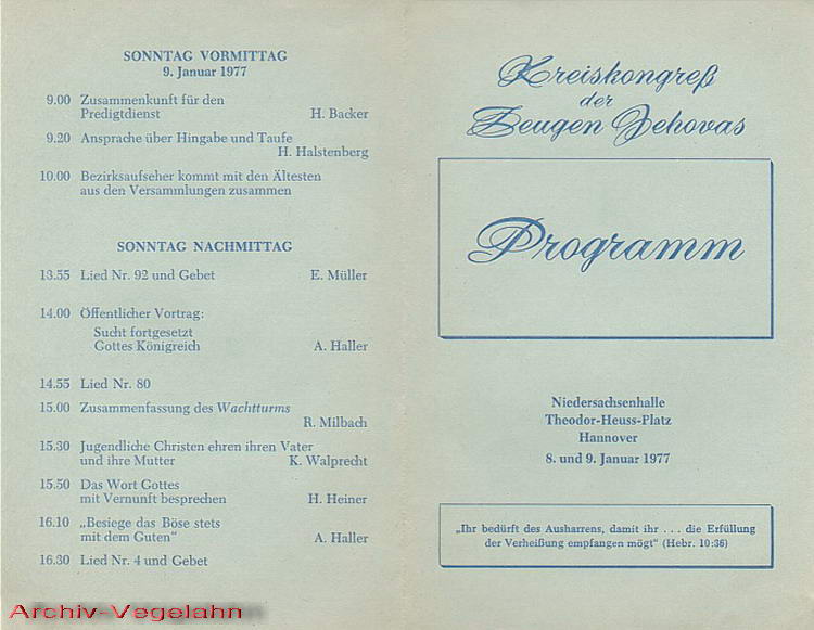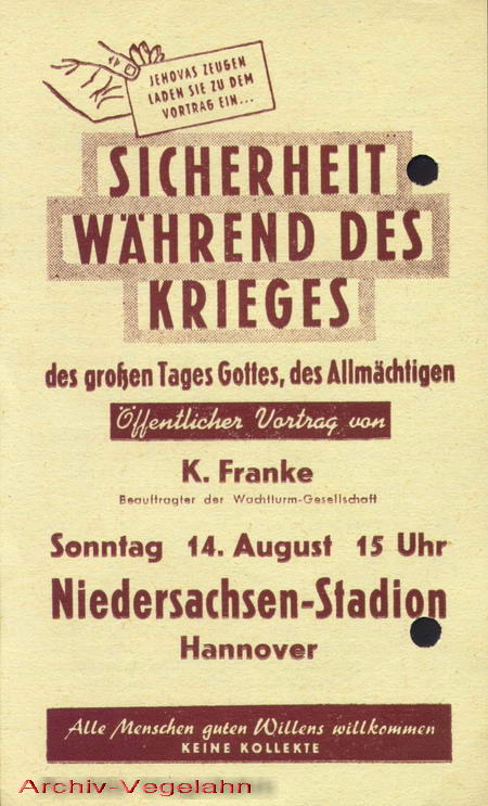 Theokratische Kreisversammlung11.04.-13.04.1951 Hannover Misburg Restaurant Meyers Garten - Waldstrasse -