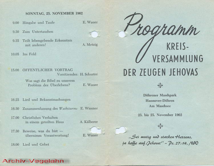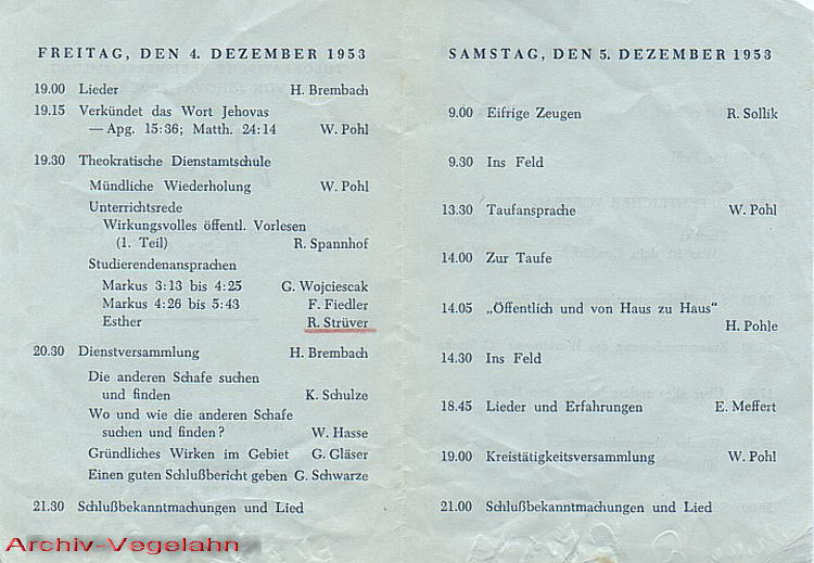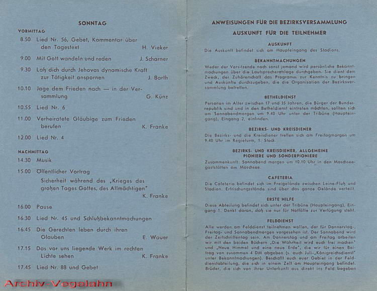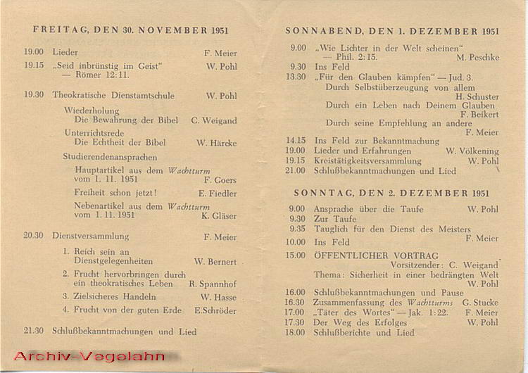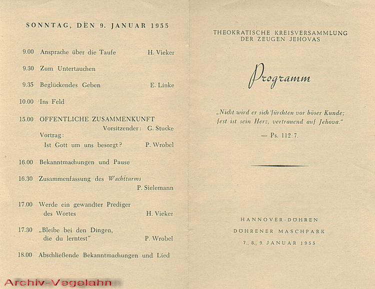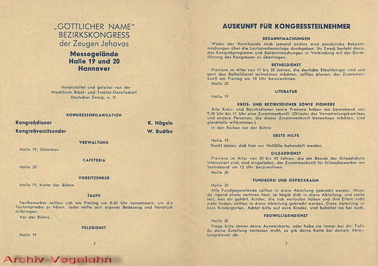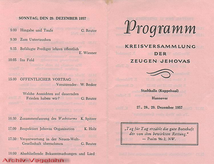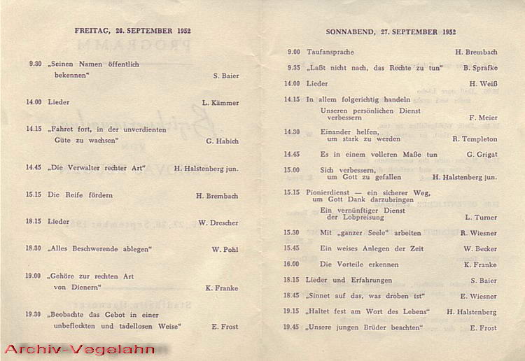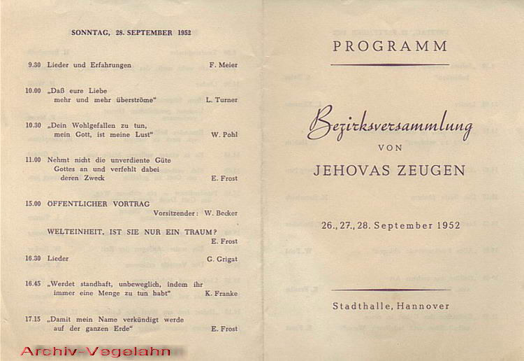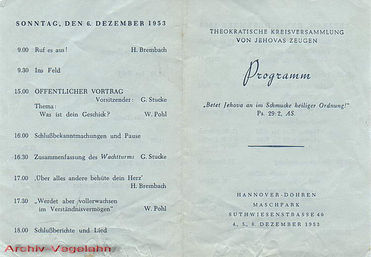 Theokratische Kreisversammlung30.11.-02.12.1951 Hannover Döhren - Döhrener Maschpark - Suthwiesenstrasse