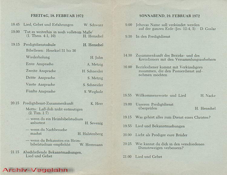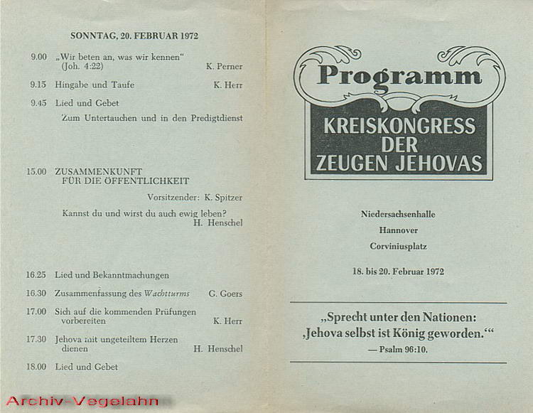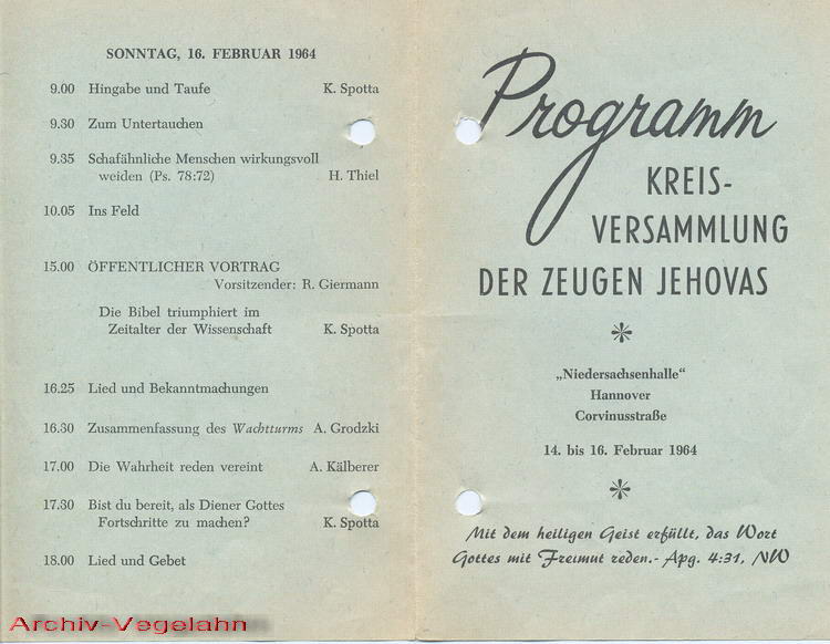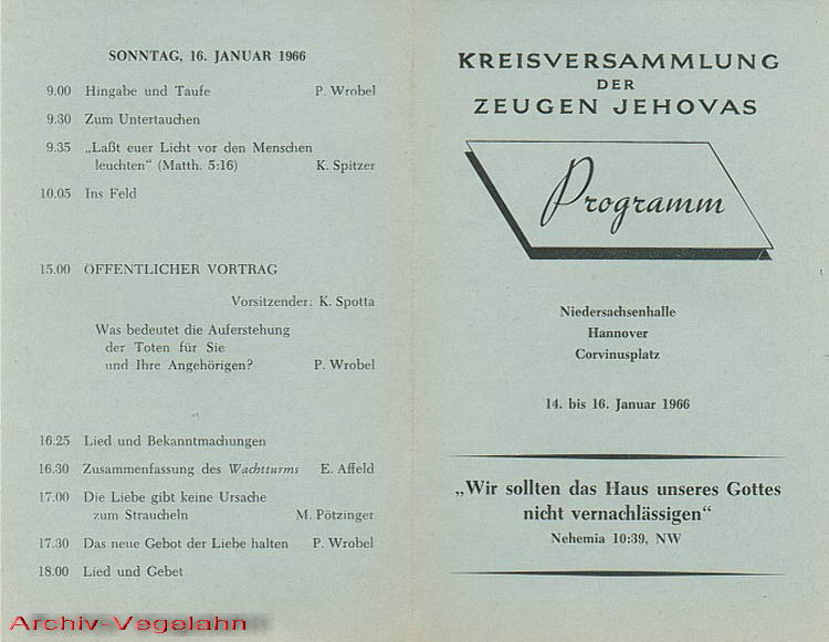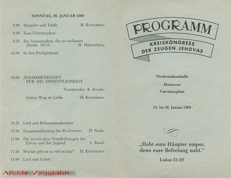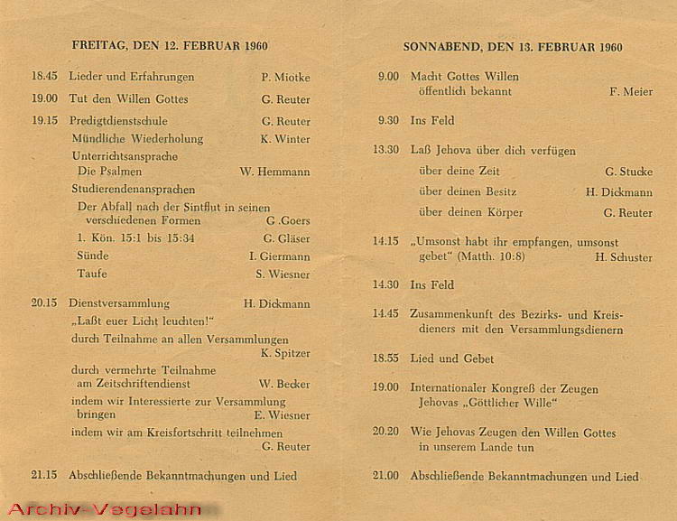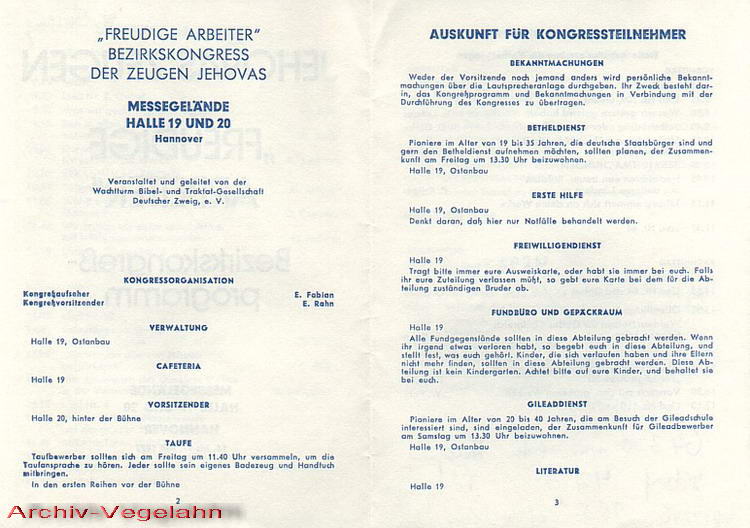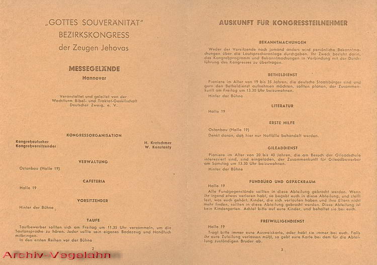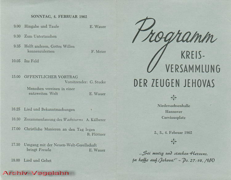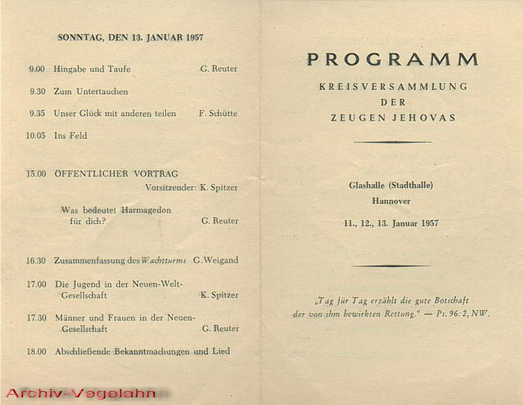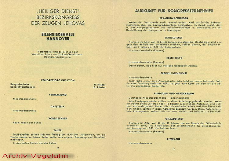 Theokratische Kreisversammlung 12.02.-14.02.1958 Niedersachsenhalle