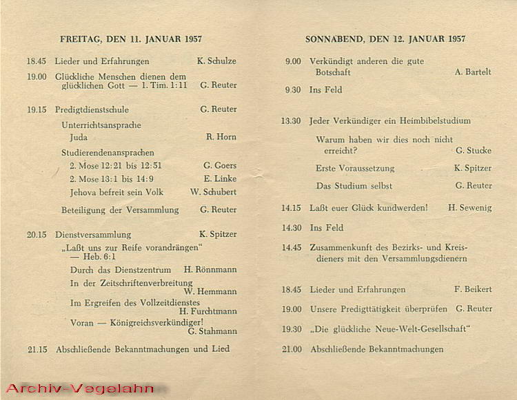 Theokratische Kreisversammlung 11.01.-13.01.1957 Glashalle 27.12.-29.12.1957 Kuppelsaal