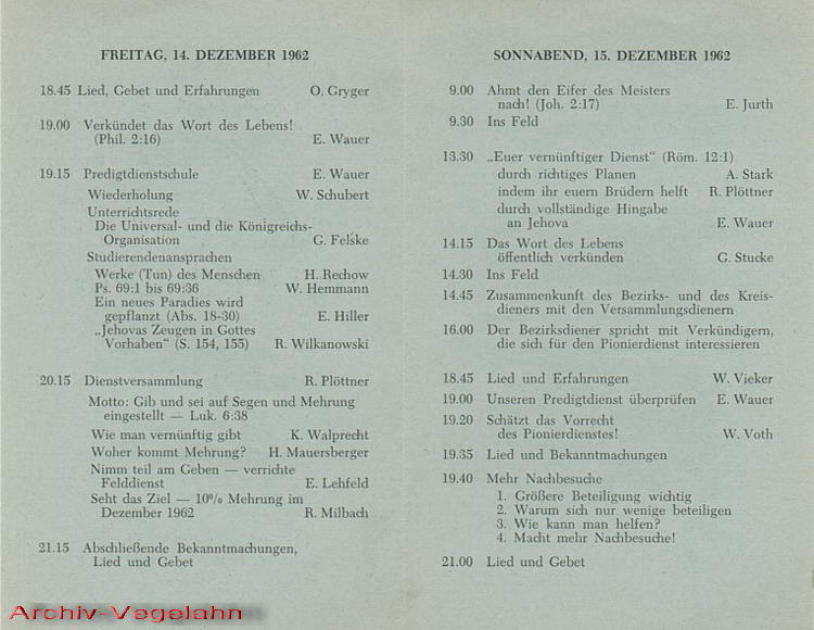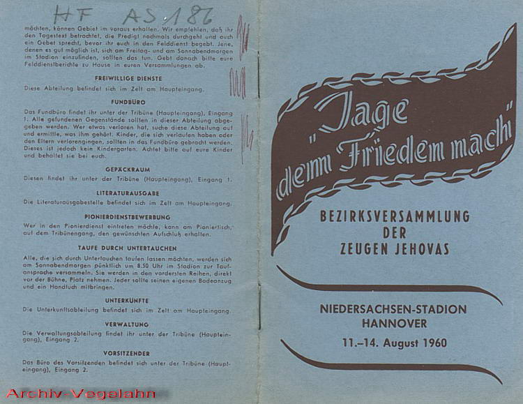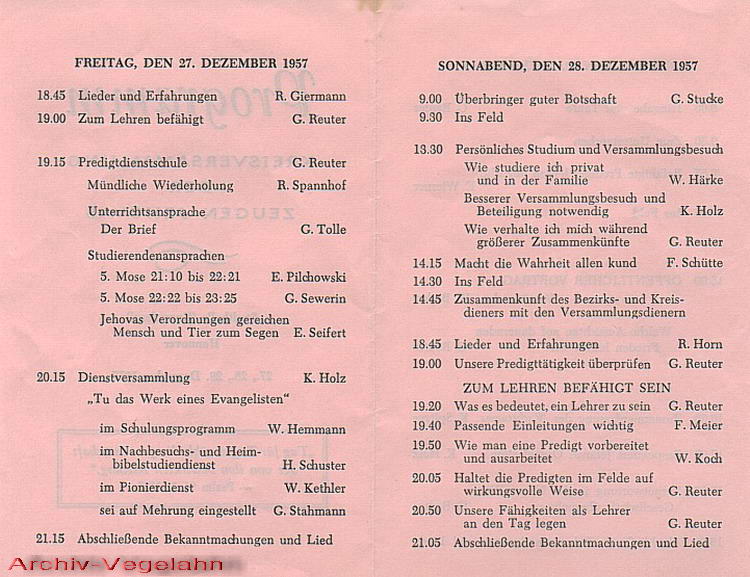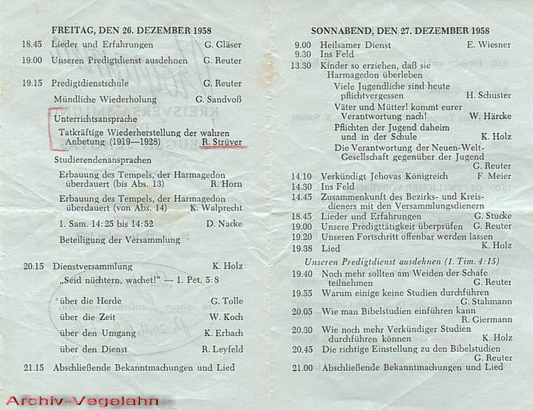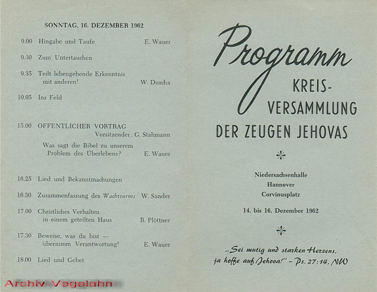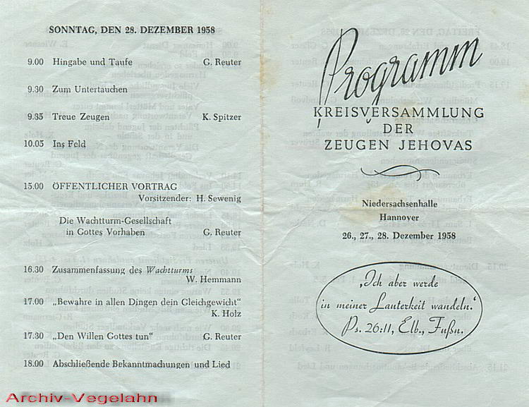 Theokratische Kreisversammlung 26.12.-28.12.1958 Niedersachsenhalle