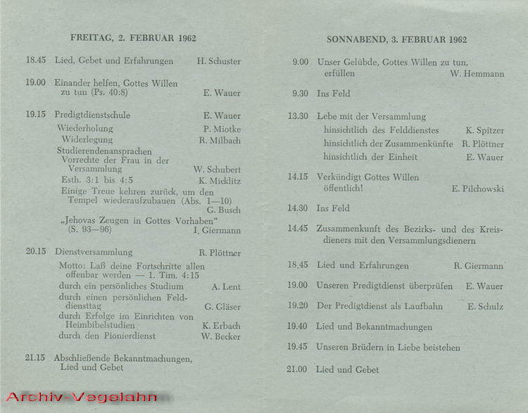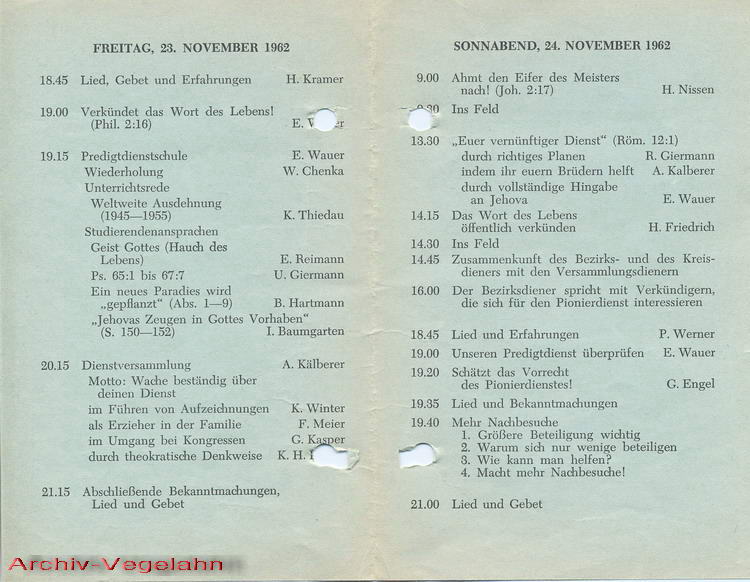 Kreisversammlung 02.02.-04.02.1962 Hannover - Niedersachsenhalle - Corvinusplatz Kreisversammlung 23.11.-25.11.1962 Hannover Döhren - Döhrener Maschpark - Am Maschsee Kreisversammlung 14.12.-16.12.1962 Hannover - Niedersachsenhalle - Corvinusplatz