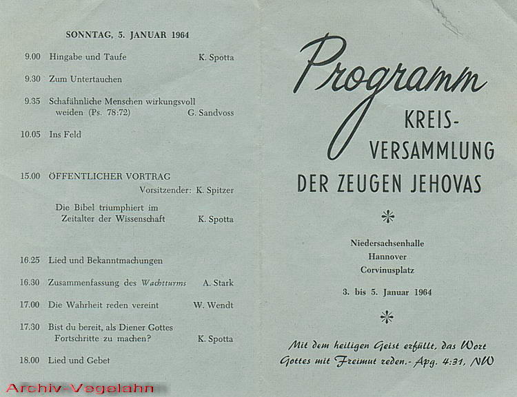 Kreisversammlung 03.01.-05.01.1964 "Niedersachsenhalle" - Corvinusstraße Kreisversammlung 14.02.-16.02.1964 "Niedersachsenhalle" - Corvinusstraße