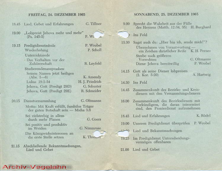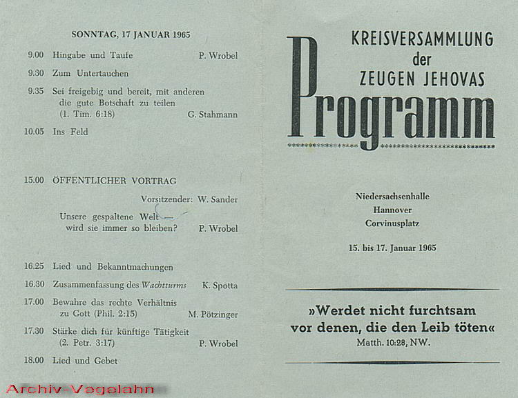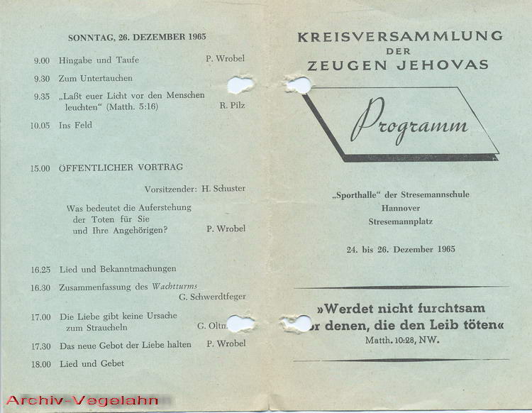 Kreisversammlung 15.01.-17.01.1965 "Niedersachsenhalle" - Corvinusstraße Kreisversammlung 24.12.-26.12.1965 "Sporthalle" der Stresemannschule - Stresemannplatz