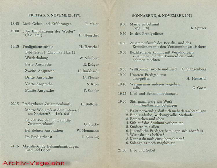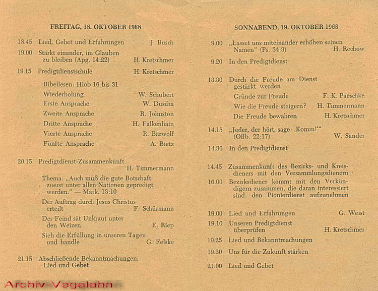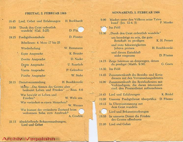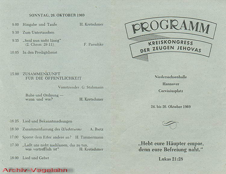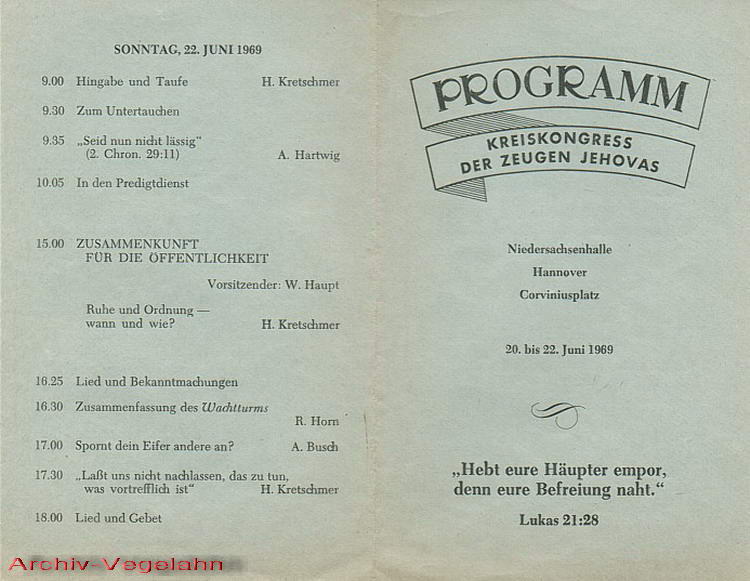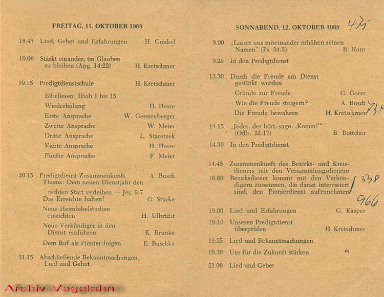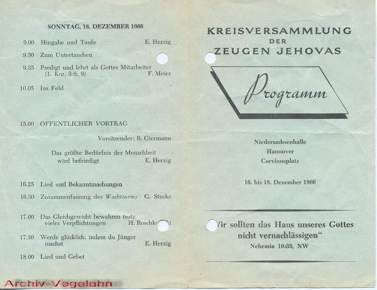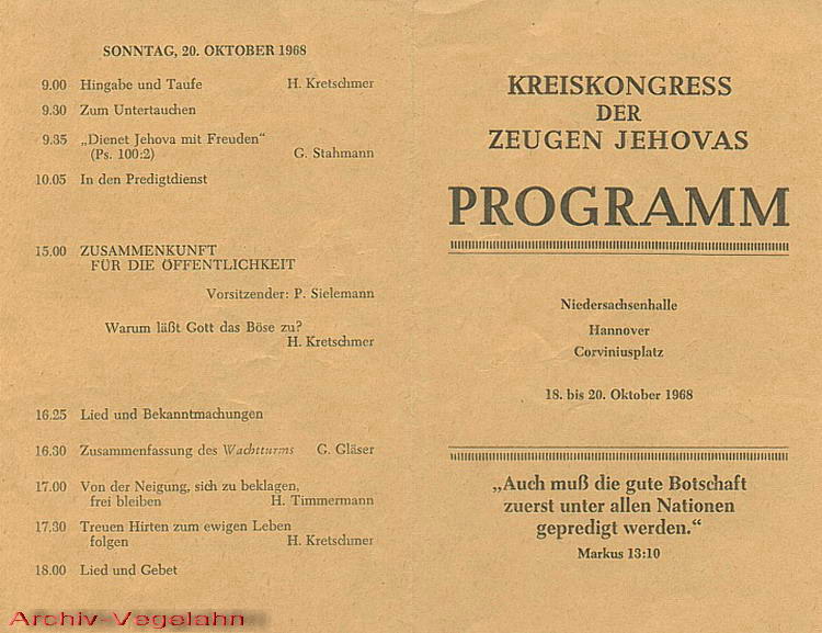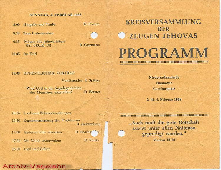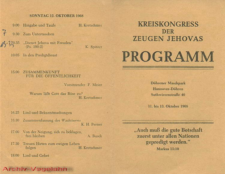 Kreisversammlung 02-02.-04.02.1968 Niedersachsenhalle Corvinusplatz Kreisversammlung 11.10.-13.10.1968 Hannover Döhren - Döhrener Maschpark - Suthwiesenstraße 40 Kreisversammlung 18-10.-20.10.1968 Niedersachsenhalle Corvinusplatz