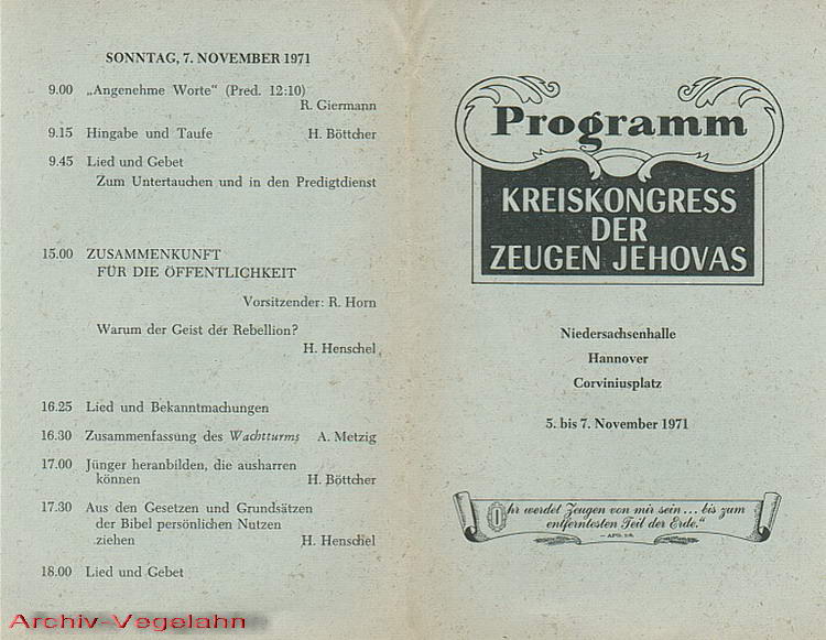 Kreisversammlung 05.11.-07.11.1971 Niedersachsenhalle Corvinusplatz