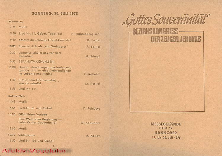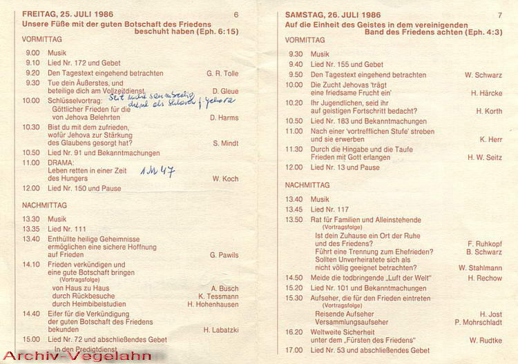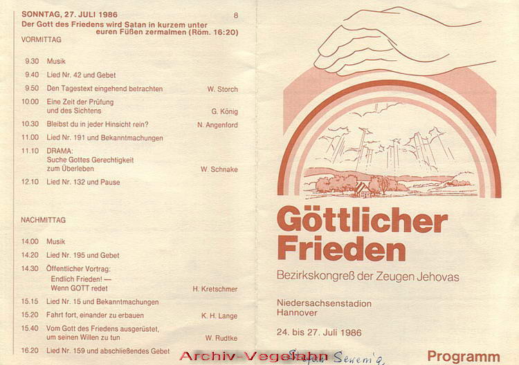 Bezirkskongress Motto: Gottergebenheit - District Conventions: "Godly Devotion" 21.07.-23.07.1989 Niedersachsenstadion