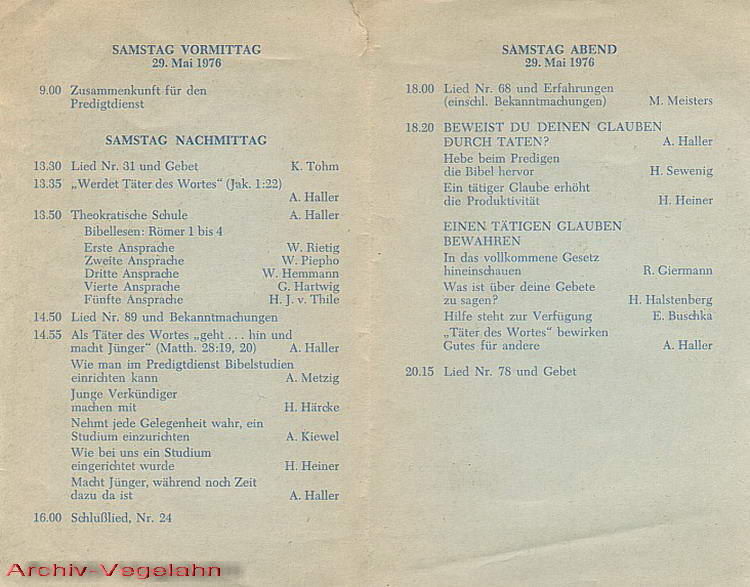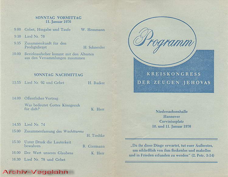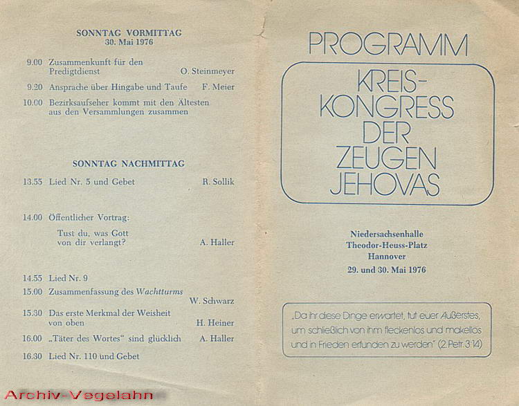 Kreiskongress 10.01.-11.01.1976 Niedersachsenhalle Corvinusplatz Kreiskongress 29.05.-30.05.1976 Niedersachsenhalle Corvinusplatz