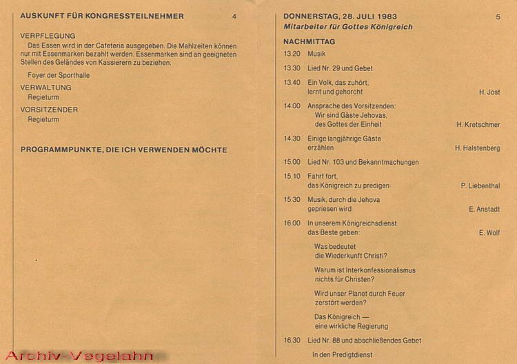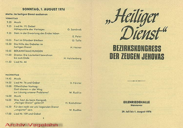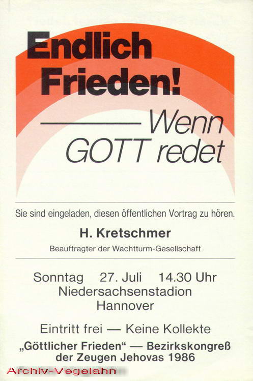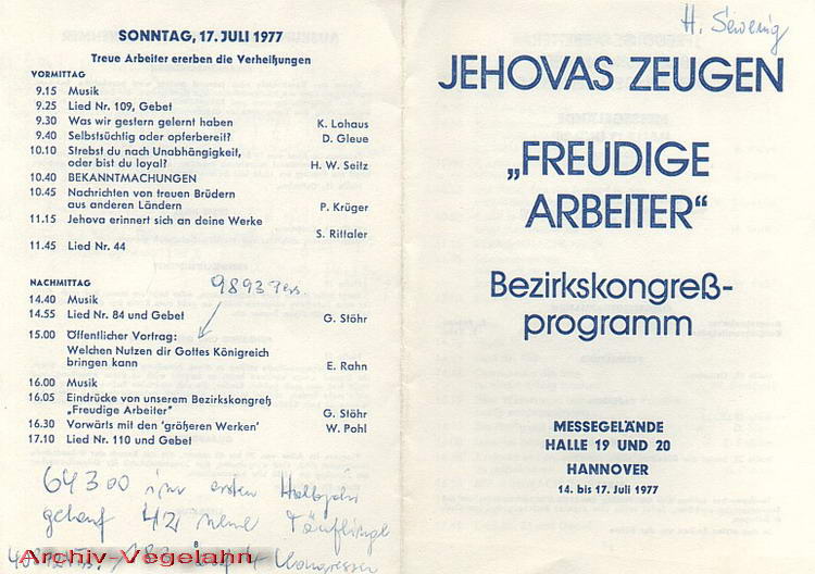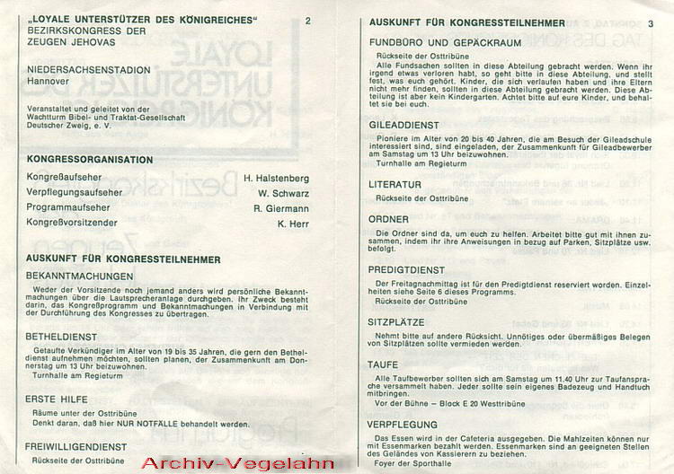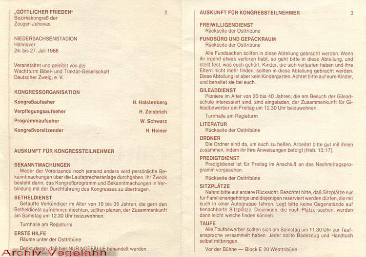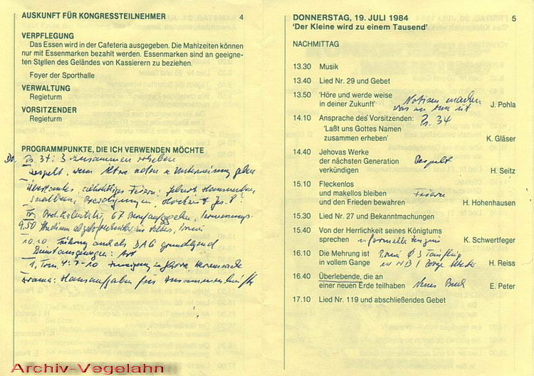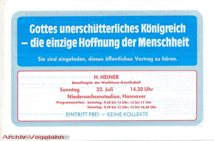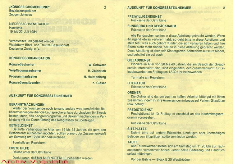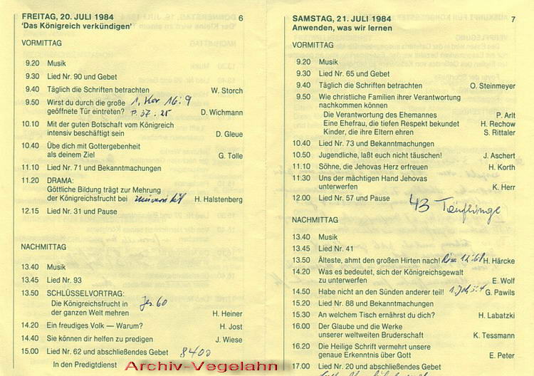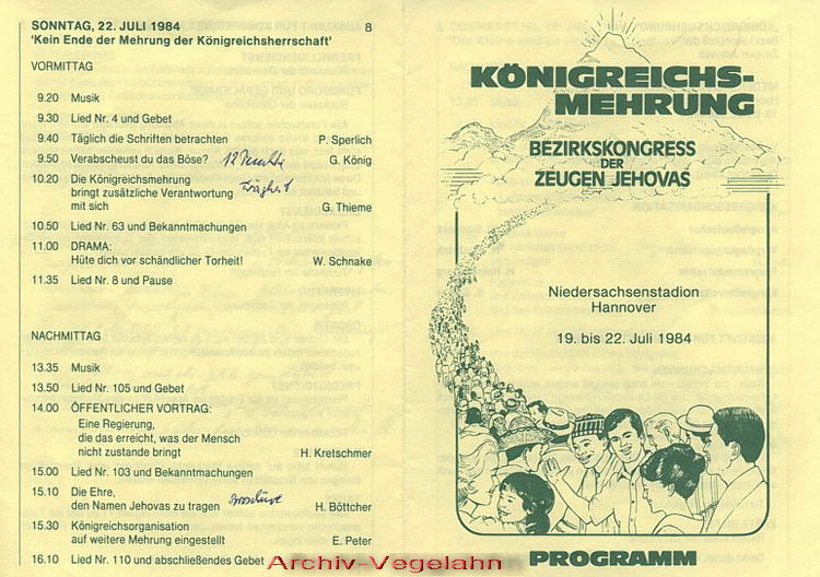 Motto: Köngreichsmehrung - District Conventions: "Kingdom Increase" 19.07.-22.07.1984 Niedersachsenstadion