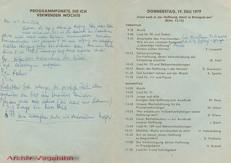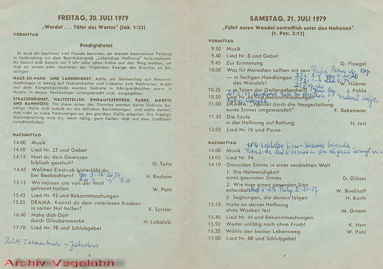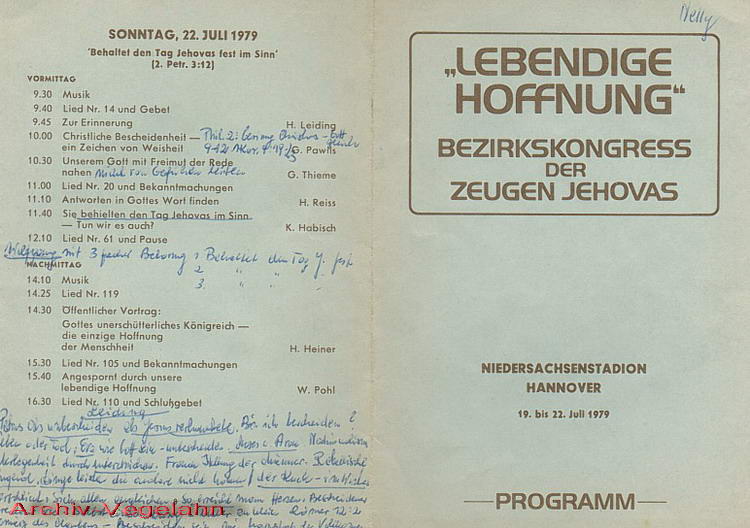 Bezirkskongress Motto: Lebendige Hoffnung - District Conventions: "Living Hope" 19.07.-22.07.1979 Niedersachsenstadion