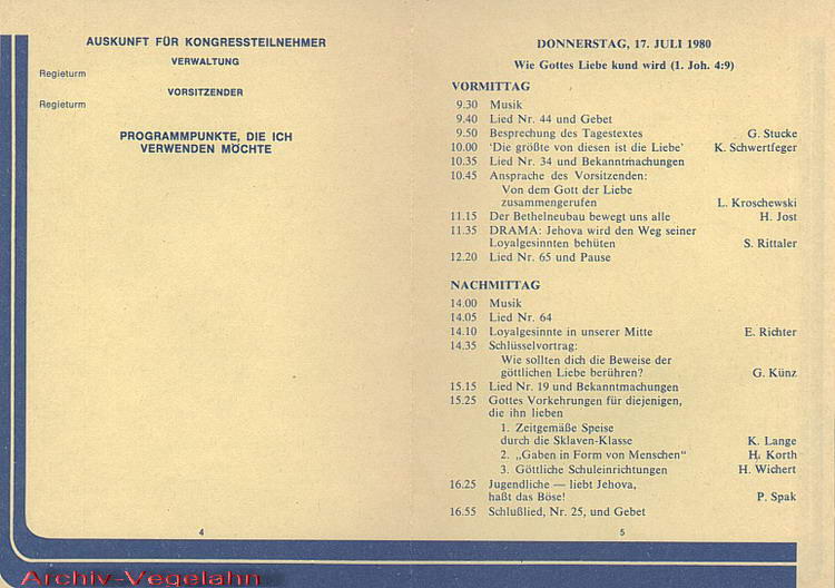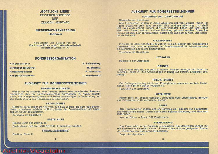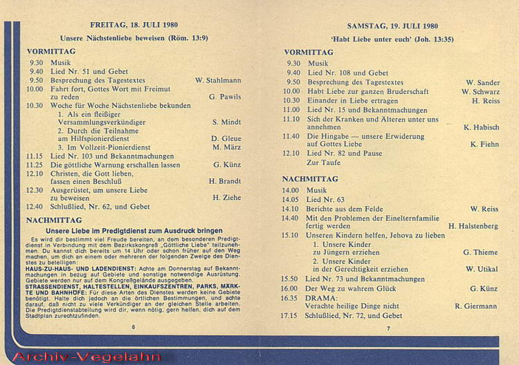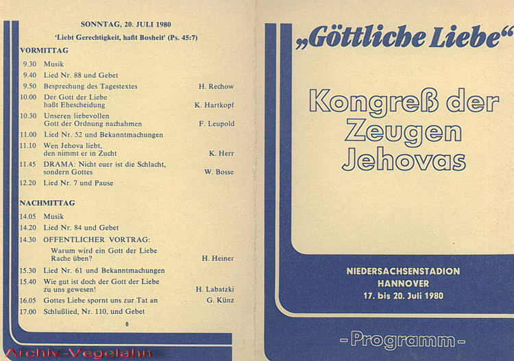 Bezirkskongress Motto: Göttliche Liebe - District Conventions: "Divine Love" 17.07.-20.07.1980 Niedersachsenstadion