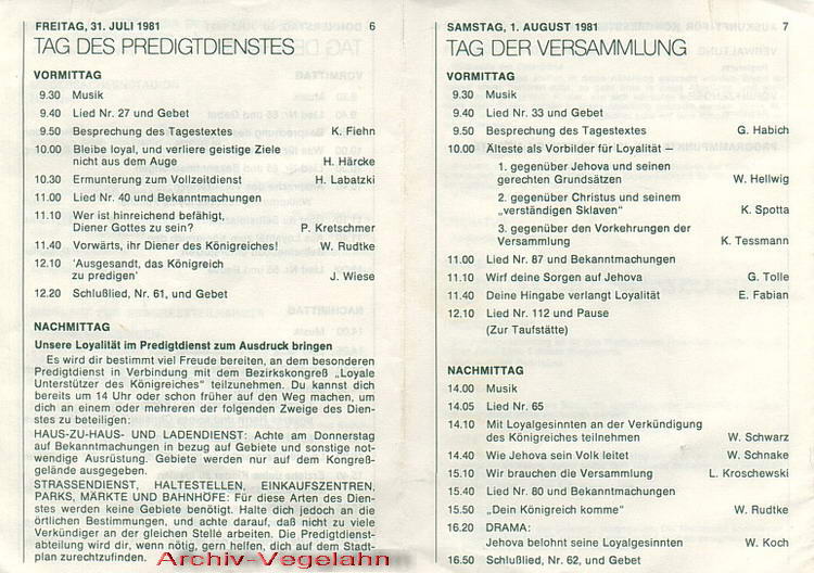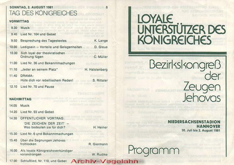 Bezirkskongress Motto: Loyale Unterstützer des Köngreiches - District Conventions: "Kingdom Loyalty" 30.07.-02.08.1981 Niedersachsenstadion