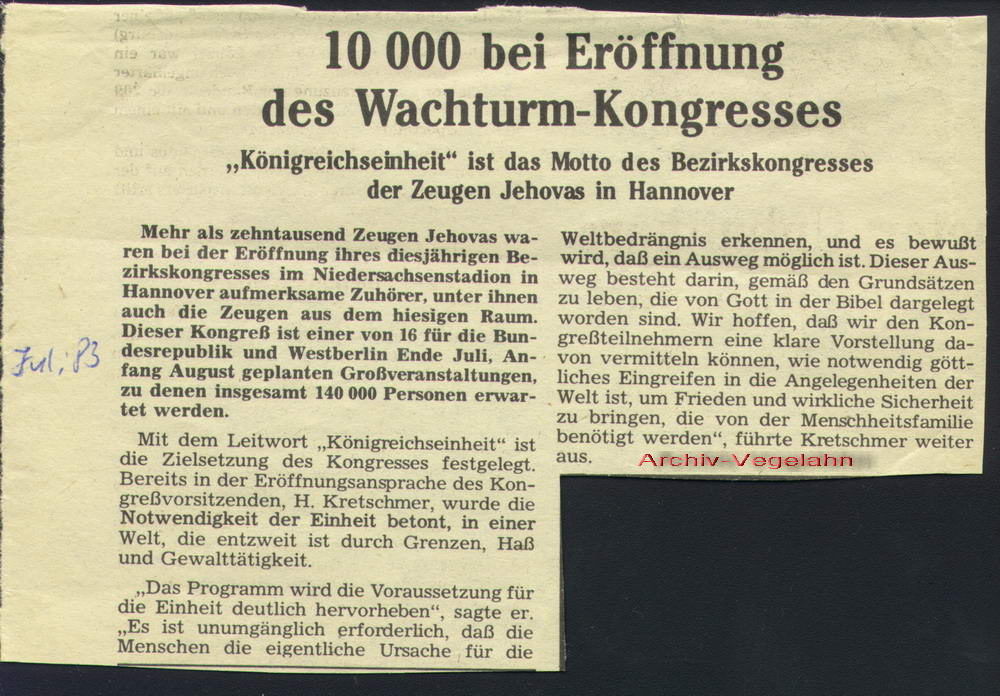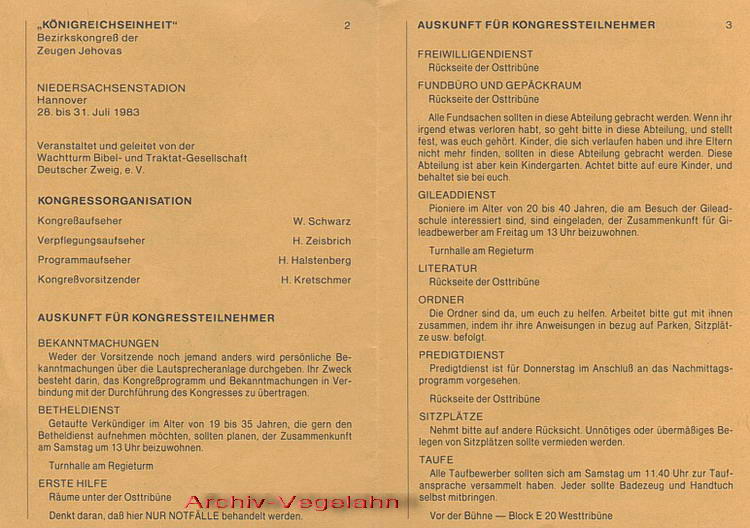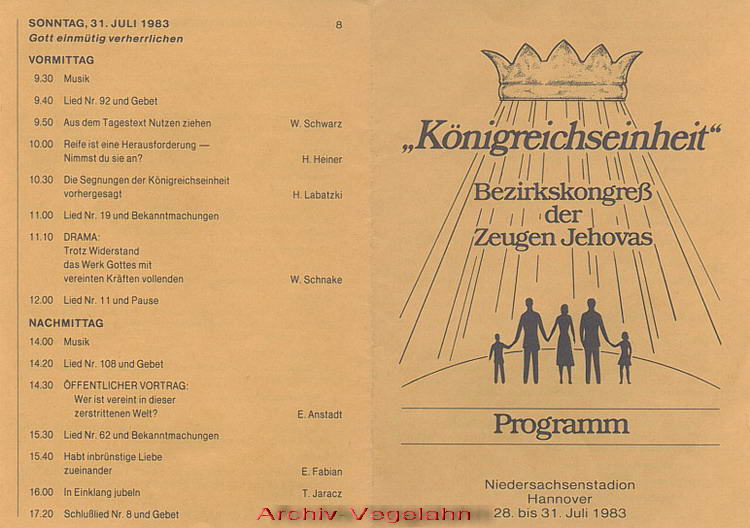 Bezirkskongress Motto: Königreichseinheit - District Conventions: "Kingdom Unity" 28.07.-31.07.1983 Niedersachsenstadion