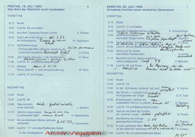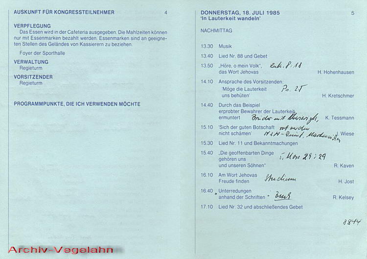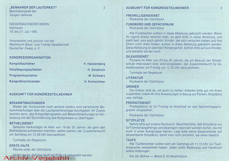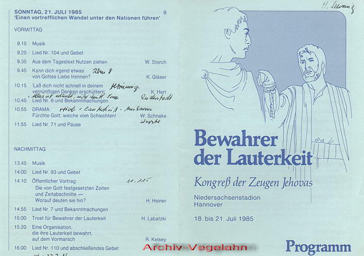 Bezirkskongress Motto: Bewahrer der Lauterkeit - District Conventions: "Integrity Keepers" 18.07.-21.07.1985 Niedersachsenstadion