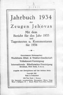 aus dem Jahrbuch 1934 der Internationalen Bibelforscher = Vereinigung,