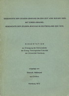Hesse, Hans (ed.): Persecution and Resistance of Jehovah´s Witnesses During the Nazi-Regime 1933-1945; Bremen: Edition Temmen; 2001; [405 Seiten];