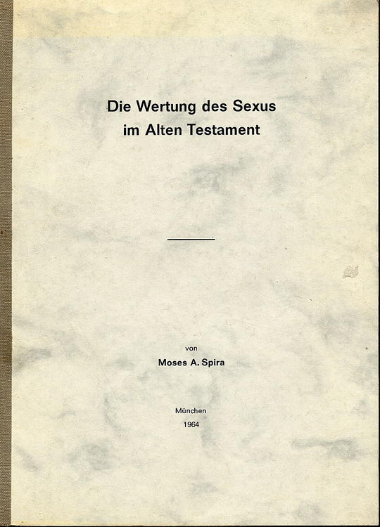 Spira, Moses A.: Die Wertung des Sexus im Alten Testament; Inaugural-Dissertation ... Ludwig-Maximilians-Universität zu München; 1964; 142 S.