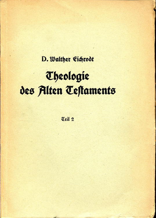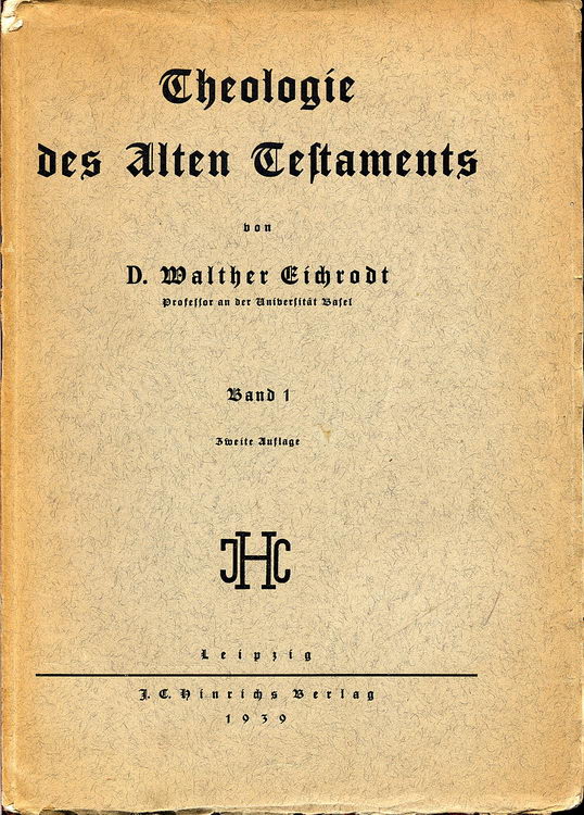 Eichrodt, Walter: Theologie des Alten Testaments, Teil 1: Gott und Volk; Leipzig: J.C.Hinrichs Verlag; 2.Aufl.1939; VIII, 290 S.