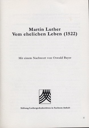 Neubauer, Richard: Martin Luther. Eine Auswahl aus seinen Schriften in alter Sprachform, Zweiter Teil (Denkmäler der älteren deutschen Literatur III. 3 ; Halle a.d.S.: Verlag der Buchhandlung des Waisenhauses; 4.u.5.Aufl. 1914; 283 S.