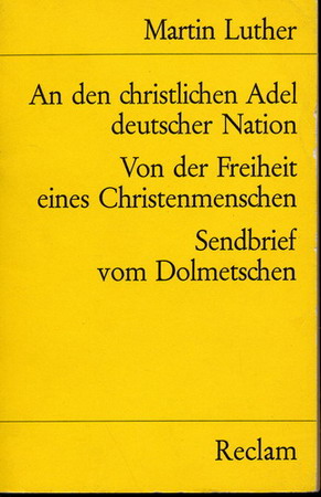 Steck, Karl Gerhard (Hrsg.): Martin Luther - An den christlichen Adel deutscher Nation , Von der Freiheit eines Christenmenschen - Ein Sendbrief vom Dolmetschen (Goldmanns Gelbe Taschenbücher - 973); München: Wilhelm Goldmann Verlag; o.J.; 175 S.;