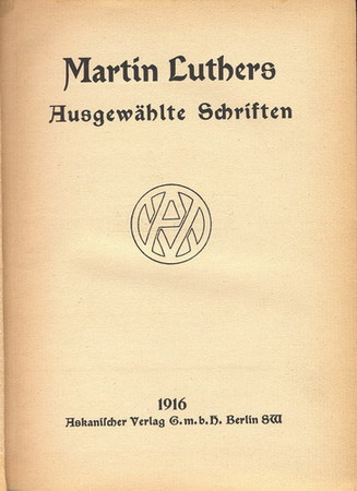 Clemen, Otto: Luthers Werke in Auswahl, Band 1; Bonn: A.Marcus und E.Weber´s Verlag; 1912; 512 S.