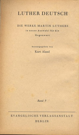 Aland, Kurt: Tischreden, (Luthers Deutsch. Die Werke Martin Luthers in neuer Auswahl für die Gegenwart, Band 9); Berlin: Evangelische Verlagsanstalt; 1948; 308 S.