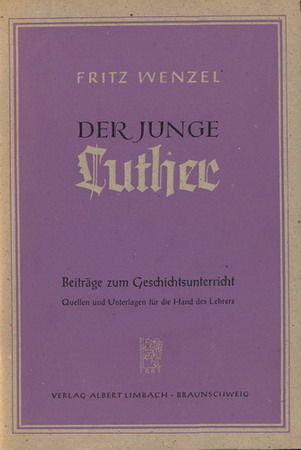 Wenzel, Fritz: Der junge Luther. Beiträge zum Geschichtsunterricht. Quellen und Unterlagen für die Hand des Lehrers; Braunschweig: Albert Limbach; 1948; 91 S.