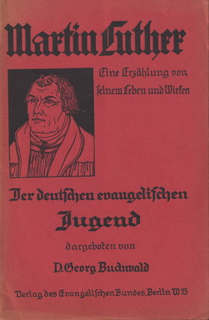 Buchwald, Georg: Doktor Martin Luther. Eine Erzählung von seinem Leben und Wirken. Der deutschen evangelischen Jugend dargeboten; Berlin: Verlag des Evangelischen Bundes; 101.-200.Tsd.1917; 48 S.