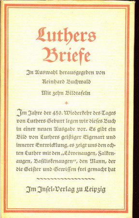 Buchenwald, Reinhard: Luthers Briefe, In Auswahl; Leipzig: Insel-Verlag; 1933; 278 S.;