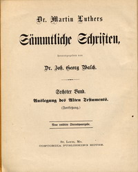 Walch, Joh. Georg: Dr. Martin Luthers Sämmtliche Schriften, Sechster Band. Auslegung des Alten Testaments. Auslegung über die großen und etliche der kleinen Propheten, nämlich Hosea, Joel und Amos.; St. Luois, Mo.: Concordia Publishing House; Neue rev. Stereotypausgabe 1897; XIV, 1837 Sp.;