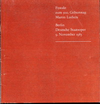 Nurkeit, Hans Jürgen: Festakt zum 500. Geburtstag Martin Luthers, Berlin Deutsche Staatsoper 9. November 1983 (Hrsg.: Martin-Luther-Komitee der DDR; Wismar: Otsee-Druck, Rostock; 1983; 16 S.;