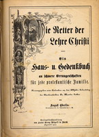 Inhalt: !. Eines Großen geringe Geburt und Jugend. (S.1-17); 2.Der Studiosus Martinus Ludher wird Mönch. (S.18-44); 3. Das stille Ringen und Reisen des Wittenbergers. (S.45-61; 4. Der Ablaßunflat und der Tempelreiniger. (S.62-99); 5. Los von Rom (S.100-119); 6. Der Glaubensheld von Worms. (S.120-145); 7. Der deutsche Doktor der heiligen Schrift. (S.146-181); 8. Von der Wahrheit zur Wahrheit. (S.182-205); 9. Der Gottessiegszug des Worts. (S.206-232); 10. Der Mann, der die Geister prüft und richtet. (S.233-260); 11. Der Mönch am eignen Herd ein Herr und Meister hochgeehrt. (S.261-330); 12. Das protestantische Gewissen und sein großes Glaubensbekenntnis. (S.331-364); 13. Neue sorgen und neue Erfolge. (S.365-399);Eberlin, August: Die Rettung der Lehre Christi, ein Haus- u. Gedenkbuch an schwere Errungenschaften für jede protestantische Familie. Herausgegeben zum Andenken an den 400jähr. Geburtstag des Glaubenshelden Dr. Martin Luther; Zürich: Hans Georg Nägeli; 1879; 720 S.;