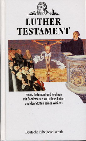 Luther Testament: Neues Testament und Psalmen mit Sonderseiten zu Luthers Leben und den Stätten seines Wirkens; Stuttgart: Deutsche Bibelgesellschaft; 1915; 812, 84 S.; ISBN 3-438-02302-04