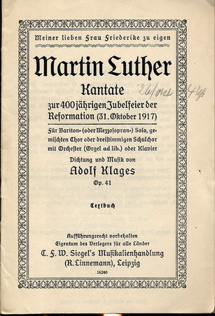 Anton, Karl: Luther und die Musik, Eine Gabe an das deutsche Volk - zum Reformations-Jubiläum; 2. verb. u. vermehrte Aufl. 1917; Zwickau: Verlag und Druck Johannes Hermann; 37 S.