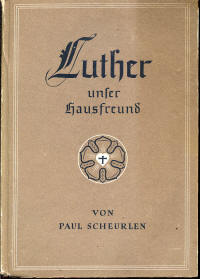 Sasse, Hermann: Was heißt lutherisch?; München: Chr. Kaiser; 1934; 103 S.;Scheurlen, Paul: Luther unser Hausfreund; Stuttgart: Calwer Verlag; 21.-25. Tsd. 1947; VIII, 288 S., 14 Kunstdrucktaf., 15 Abb., 1 Vierfarbblatt;
