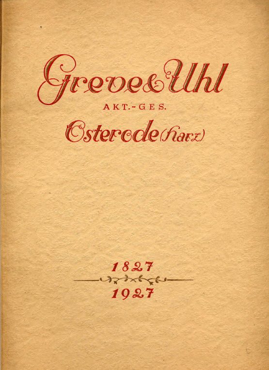 - Greve & Uhl: Greve & Uhl Akt.-Ges. Osterode (Harz) 1827 - 1927; J.J. Weber Leipzig; 33 S. 1927;
