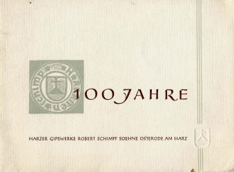 - 100 Jahre - Harzer Gipswerke Robert Schimpf Soehne Osterode am Harz 1862-1962; Osterode: Krösing-Druck; [28 S.]