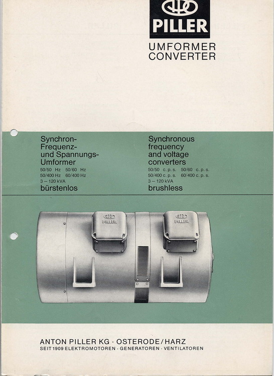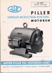 - Piller: Handbuch für läufergespeiste Drehstrom-Nebensstrom-Kommutator-Motoren [7430966]; 48 S.; o.J.(ca.1970);