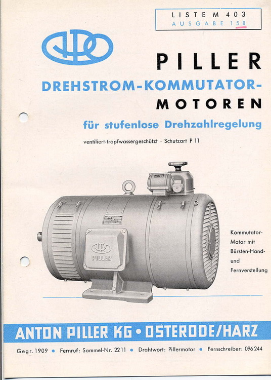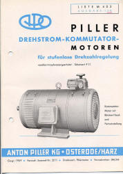 Piller Drehstrom-Kommutator-Motoren Liste M403 Ausgabe 0158; 4 S.