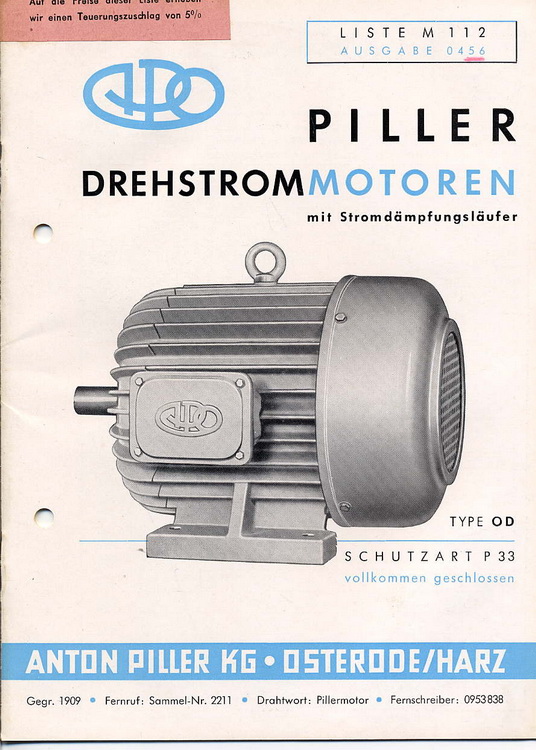 Piller Drehstrommotoren Liste M112 Ausgabe 0456 - Type OD; 12 S.