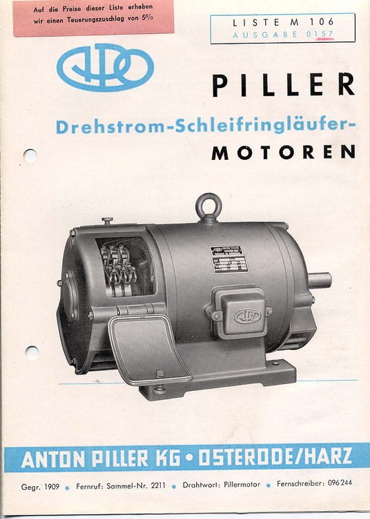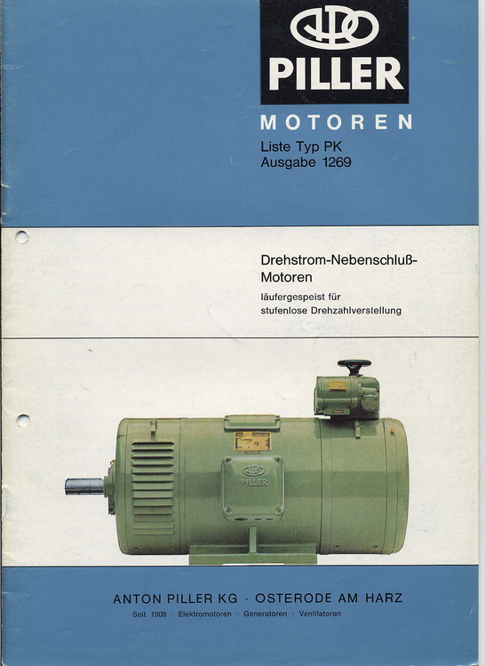PILLER - Motoren Liste Typ PK Ausgabe 1269 - Drehstrom-Nebenschluß-Motoren; 18 S.
