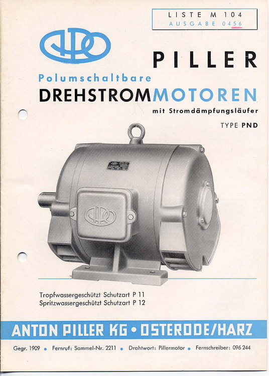 Piller Drehstrommotoren Liste M104 Ausgabe 0456 - Type PND; 6 S.