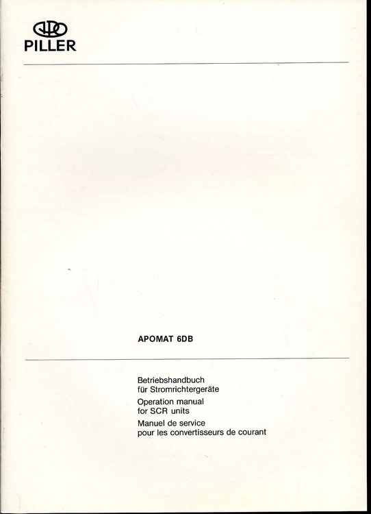 PILLER - APOMAT 6DB - Betriebshandbuch für Stromrichtergeräte;[o.J.]; 30 S. [deutsch, englisch, französisch]