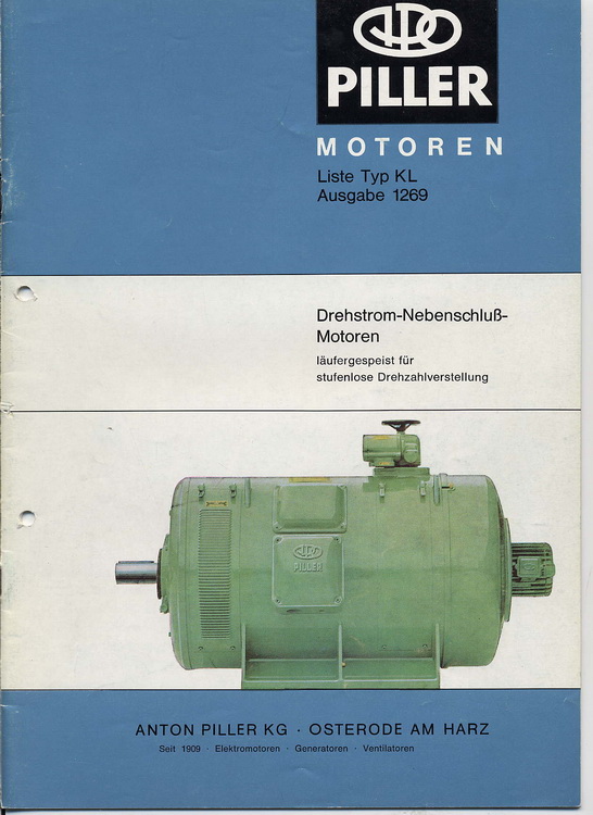 PILLER - Motoren Liste Typ KL Ausgabe 1269 - Drehstrom-Nebenschluß-Motoren; 24 S.