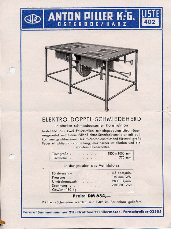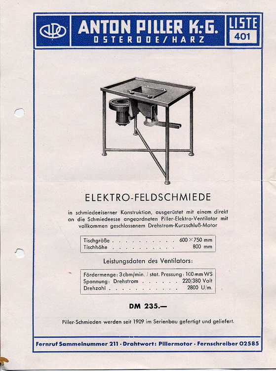 - Anton Piller K.G. Osterode am Harz Liste 401. Elektro-Feldschmiede; Druck: Friedrich Wagner, Duderstadt; 2 S.