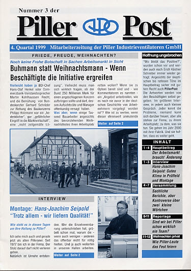 Piller Post - Mitarbeiterzeitung der Piller Industrieventilatoren GmbH; Nummer 3.; 4.Quartal 1999; 12 S.