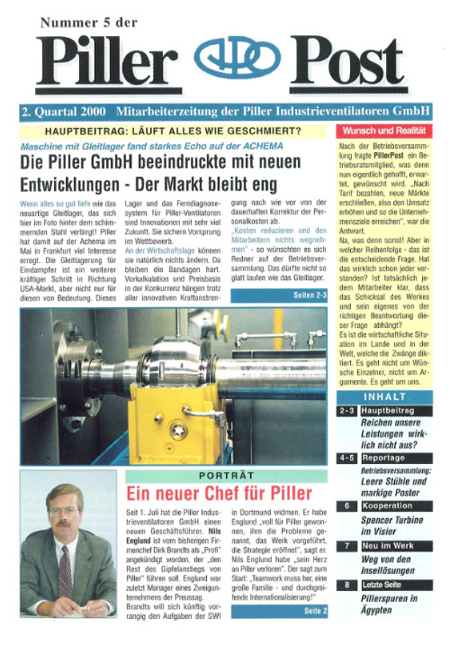 Piller Post - Mitarbeiterzeitung der Piller Industrieventilatoren GmbH; Nummer 5.; 2.Quartal 2000; 12 S.