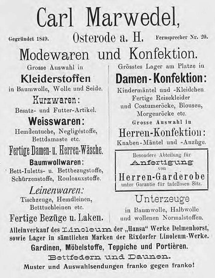 Osterode a.H. Gegründet 1849 - Fernsprecher Nr.20