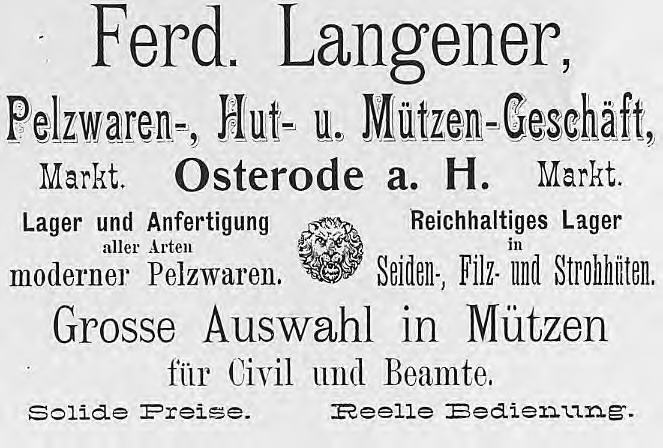 Das seit 1910 in Clausthal bestehende Zweiggeschäft erfreut sich größten Vertrauens und ZUspruches der dortigen Kundschaft