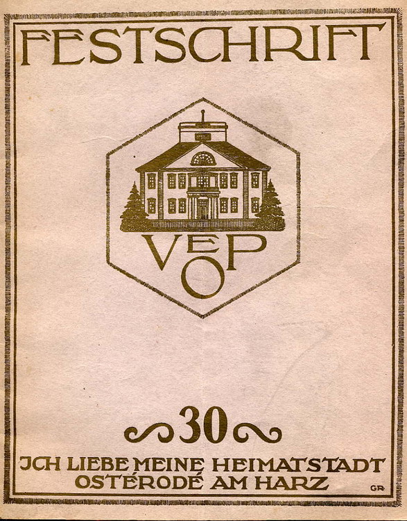 - Festschrift: Wiedersehensfeier anläßlich des 30jährigen Bestehens des Vereins ehemaliger Osteroder Pennäler am 19 und 20. Mai 1934; 20 S. 1934;